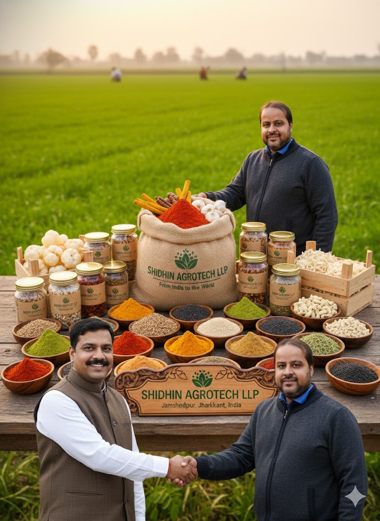 SHIDHIN AGROTECH LLP, based in Jamshedpur, Jharkhand, is rapidly becoming a preferred name for international B2B buyers seeking high-grade, sustainable, and ethically sourced agricultural commodities. Founded by Mr. Dhirendra Kumar Sinha, the company bridges the gap between the rich biodiversity of Indian farms and the evolving needs of the global food, wellness, and cosmetic industries.